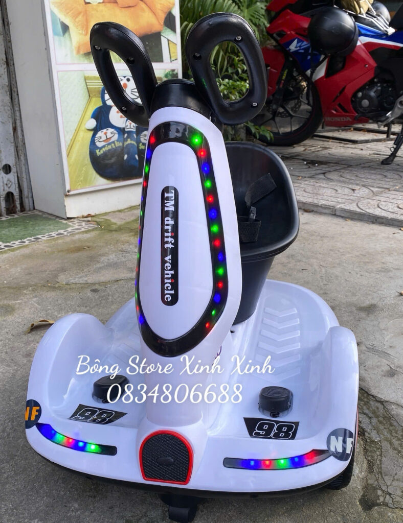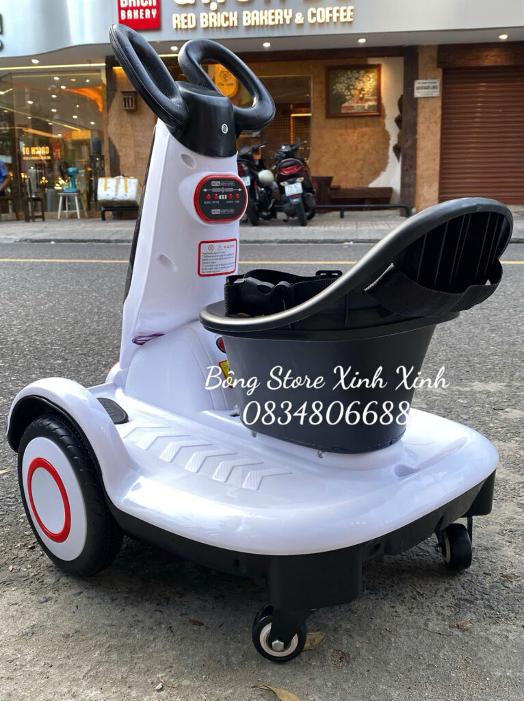 Thông tin chi tiết về sản phẩm:xe điện cho bé xoay 360 độ màu trắng 2 động cơ khoẻ tại Nha Trang