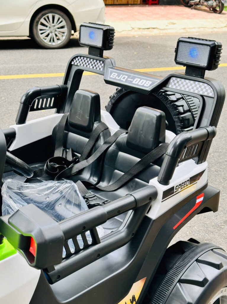 Xe ô tô điện trẻ em BJL-008 địa hình tại Nha Trang được trang bị 4 động cơ mạnh mẽ cho tốc độ từ 3 – 5 km/h giúp xe di chuyển được trên nhiều địa hình khác nhau. Bên cạnh đó, hệ thống giảm sóc cũng được trang bị trên xe, giúp xe di chuyển mượt mà hơn, không gây rung lắc cho bé khi di chuyển.