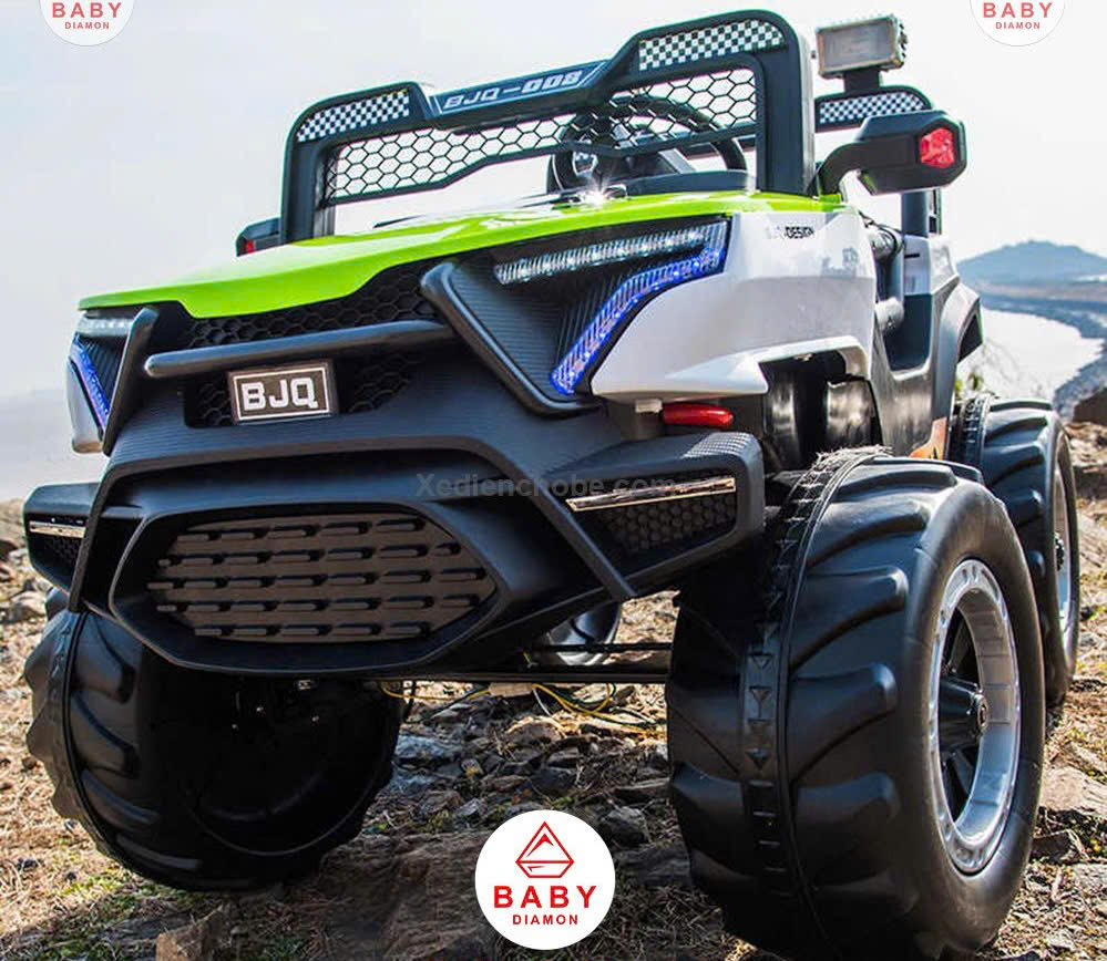 Xe ô tô điện trẻ em BJL-008 địa hình tại Nha Trang kiểu dáng hầm hố nhưng nhỏ gọn, thể thao, được lấy ý tưởng từ dòng xe địa hình off road ngoài đời thật, thích hợp cho bé nhỏ dưới 50 kí, xe hoạt động tốt nhất với bé 40-45kg, hoặc từ 6 tháng đến 10 tuổi, có dây an toàn, có điều khiển từ xa cho bố mẹ, và chế độ tự lái cho bé
